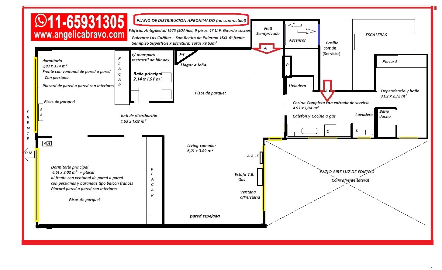Edificio: Antigüedad 1975 (50 años) 9 pisos, 17 U.F. Guarda coches x Reglamento x sorteo, encargado permanente. Ascensor (salida a hall principal y servicio)